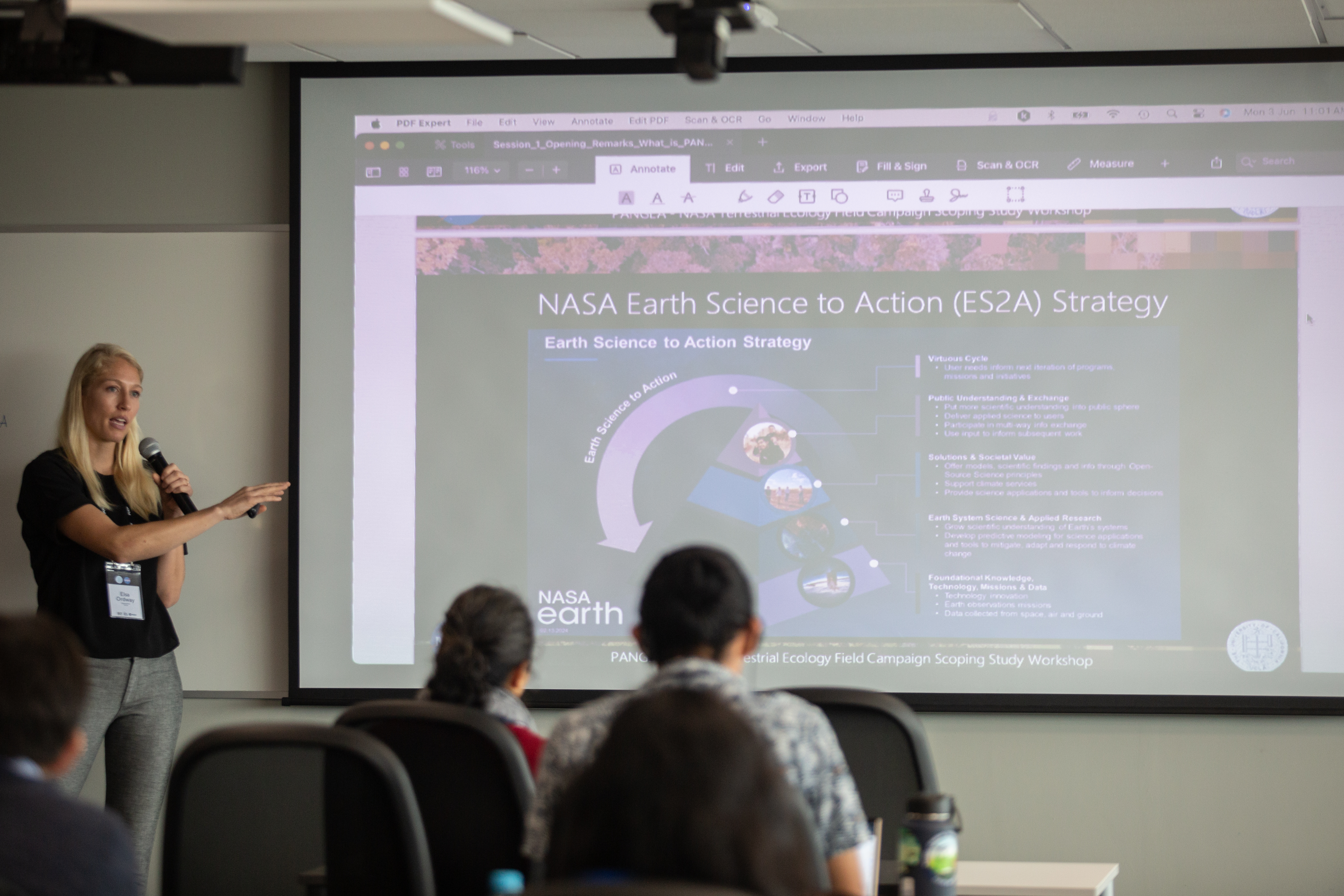 The agenda featured a blend of presentations from leaders of past NASA campaigns (like ABOVE, LBA), ongoing NASA air- and space-borne missions (such as EMIT, NISAR, and GEDI), and collaborative research partners (like GEO-TREES and NGEE-Tropics). These presentations aimed to brief participants on the objectives of the PANGEA scoping process. The PANGEA Working Group leads provided an initial update on progress, highlighting input from over 300 members to craft guiding questions, identify key research gaps, and make headway in defining PANGEA science themes. Other session activities included focused discussions on capacity building strategies, engagement of students and early-career professionals, identification of funding sources, and best practices for information gathering and community engagement.